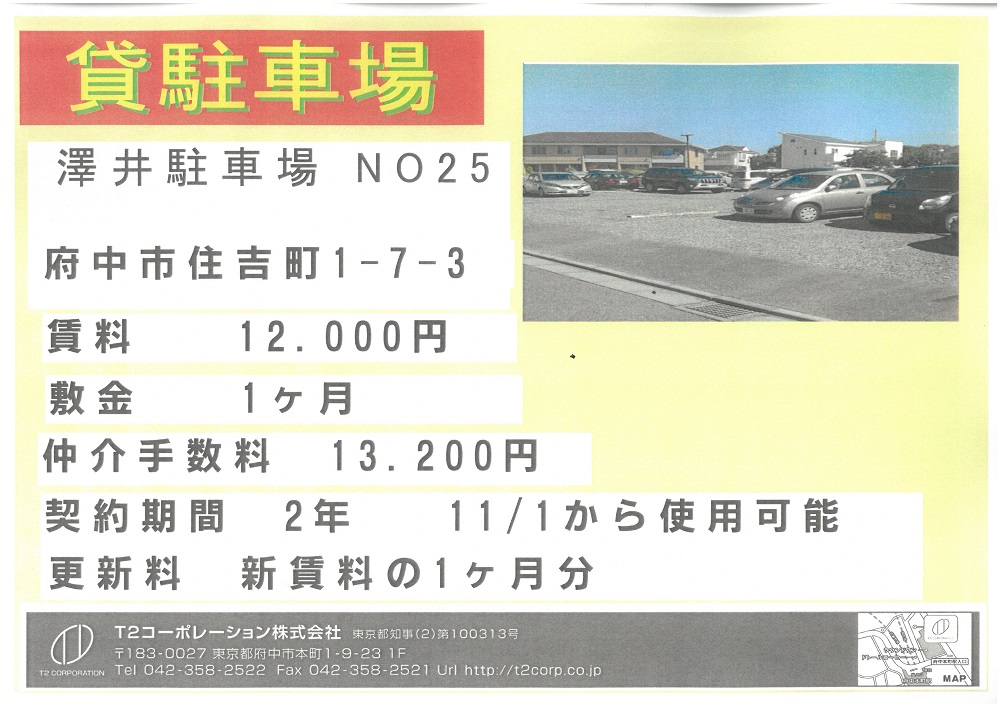 【中河原駅徒歩5分・安心安全な貸駐車場】澤井駐車場№25